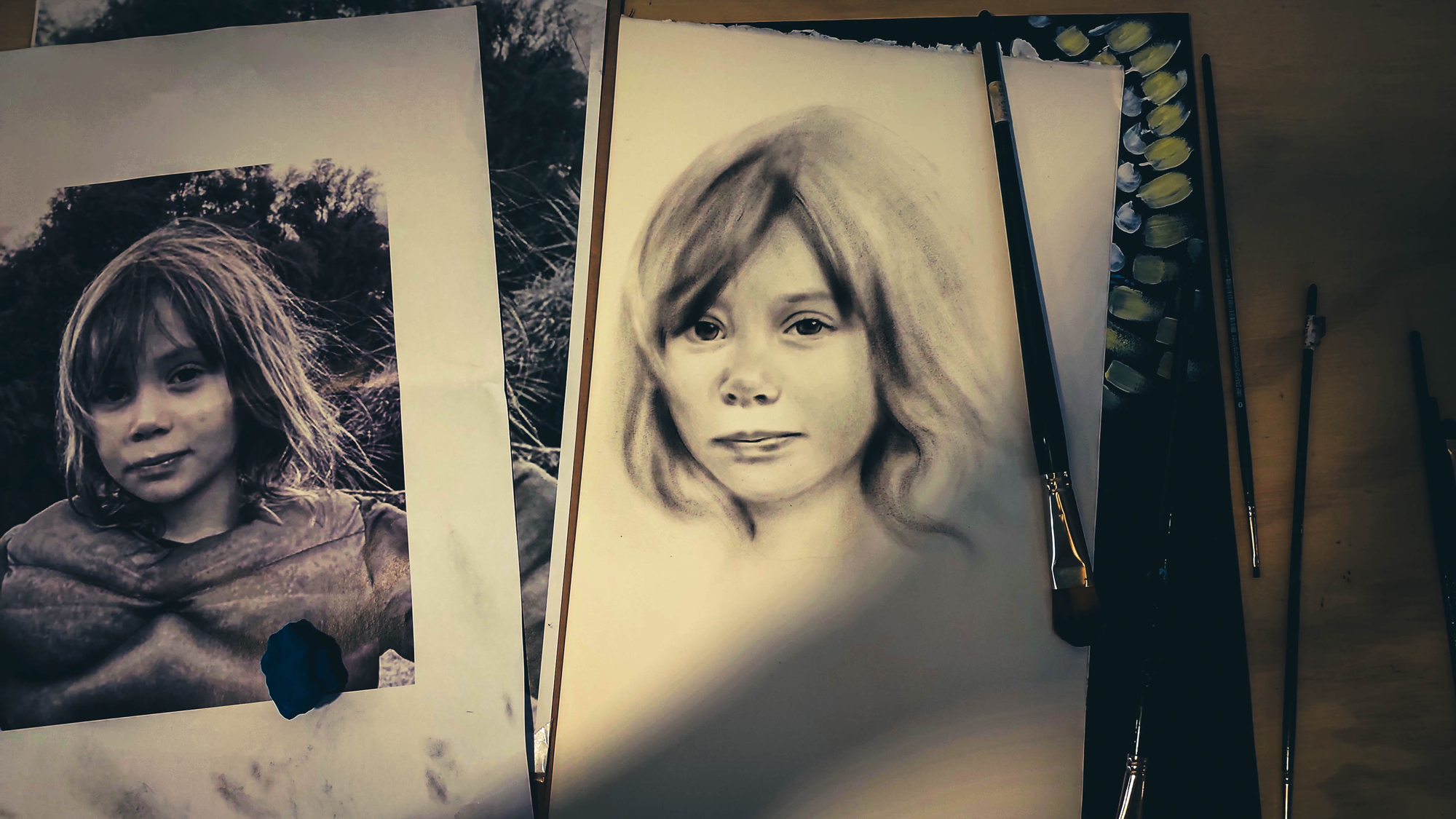 Lani's dry brush technique is simple yet powerful using only the smallest amount of black oil paint and an eraser to create finely detailed portraits.